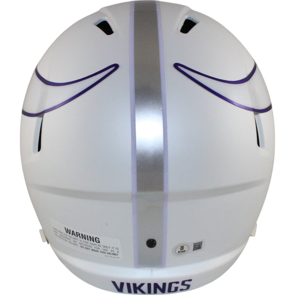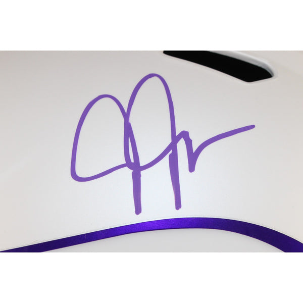 The number in the listing title is just an inventory sku for our records and is not the authentication number. The item pictured is a stock photo unless otherwise noted. This is a Minnesota Vikings Full Size Replica 2024 Alternate Helmet that was personally autographed by Justin Jefferson. Includes a certificate of authenticity from Beckett Authentication Services (BAS) and Denver Autographs.