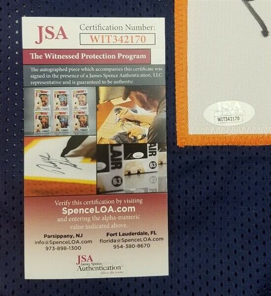 Custom on-field style jersey. Everything sewn on, size XL. Hand-signed by K. J. Hamler. The lot / autograph(s) includes an official James Spence Authentication (JSA) hologram fand matching COA for authenticity purposes. The signing of this item was witnessed by JSA.Authentication: JSA COA