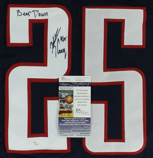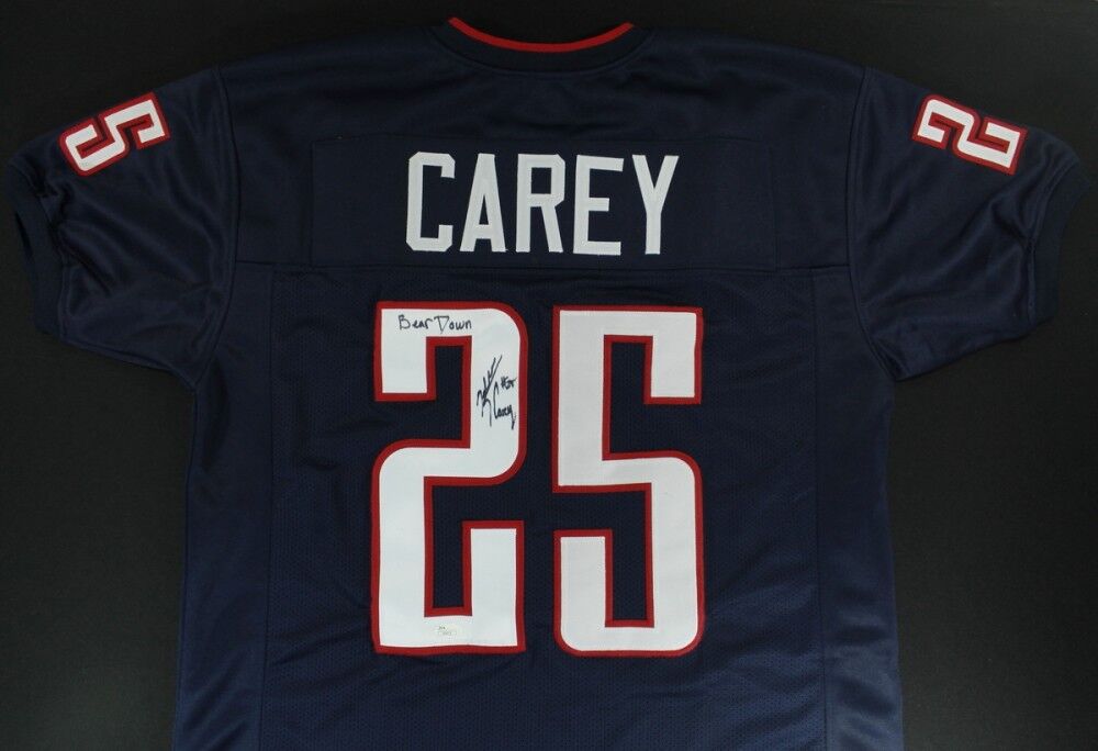 On-field style jersey. Everything sewn on, size XL. Hand-signed in black felt tip pen by Ka'Deem Carey. In 2012 (his sophomore season), he rushed for 1,929 yards on 303 carries with 23 touchdowns, which broke the Arizona single-season record for both rushing yards and rushing touchdowns. On November 10, 2012 Carey set the Pac-12 record for rushing yards in a game with 366. He was named a 2012 consensus All-American at the running back position. He finished his 2013 Junior season with 1,885 yards on 349 carries and 19 touchdowns and was a consensus All-American for the second straight season. Kerry finished 10th in Heisman Trophy voting in 2013 and is a leading candidate for the award going into his 2014 Senior season.The autograph includes an official James Spence Authentication (JSA) hologram and matching COA for authenticity purposes.Authentication: JSA COA