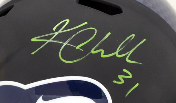This is a Seattle Seahawks Flat Matte Black full size replica Helmet that has been hand signed by Kam Chancellor. This item was signed in the presence of a Mill Creek Sports representative and comes with their serial numbered hologram and matching certificate of authenticity.