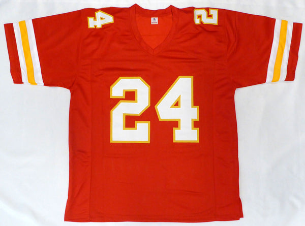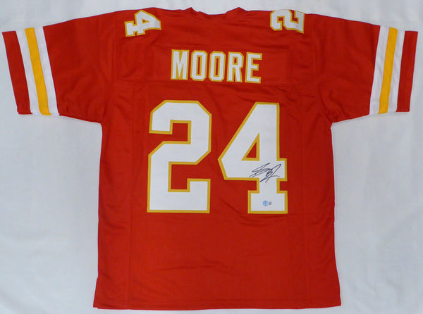 This is a Red Jersey that has been hand signed by Skyy Moore. This is a custom jersey with no name brand. The approximate size is XL. It has nice sewn in name and numbers. This item has been certified authentic by Beckett Authentication (BAS) and comes with their tamper-proof QR Code sticker that can be verified on the Beckett-authentication.com.