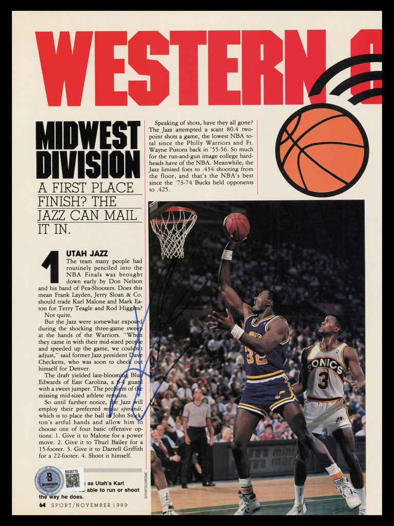This is an 8x11 Magazine Page Photo that has been hand signed by Karl Malone. This item has been certified authentic by Beckett Authentication (BAS) and comes with their tamper-proof QR Code hologram.