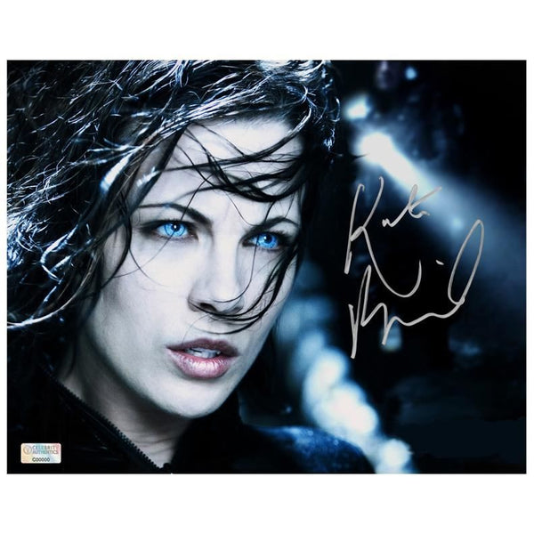 Celebrity Authentics is the exclusive autograph partner of Kate Beckinsale. Please be aware most other online autographs purported to be Ms. Beckinsale's are forgeries. Ms. Beckinsale has only signed with Celebrity Authentics so be sure the item you choose is affixed with the Celebrity Authentics Authentication Hologram for her genuine signature.This 8x10 close up photo of Selene, the Vampire Death Dealer from the 2006 Underworld Evolution has been personally hand-signed by actress Kate Beckinsale during her signing with Celebrity Authentics. Seductive vampire Selene (Kate Beckinsale) and renegade werewolf Michael (Scott Speedman) love one another, but find themselves abhorred by the members of their own clans. Seeking clues that might provide a key to healing the rift between their species, they are hounded by Marcus (Tony Curran), an ancient creature obsessed with perpetuating the war between them. Continually beset by enemies from both sides, the lovers explore their pasts as they seek their destiny. Ships affixed with Celebrity Authentics serial-numbered and tamper evident Authentication Hologram and includes Celebrity Authentics Certificate of Authenticity featuring picture of Kate signing photo. Please note: with multiples signed by the actor, a sample photo is used from stock to represent what you will receive. Exact autograph size and placement may vary.