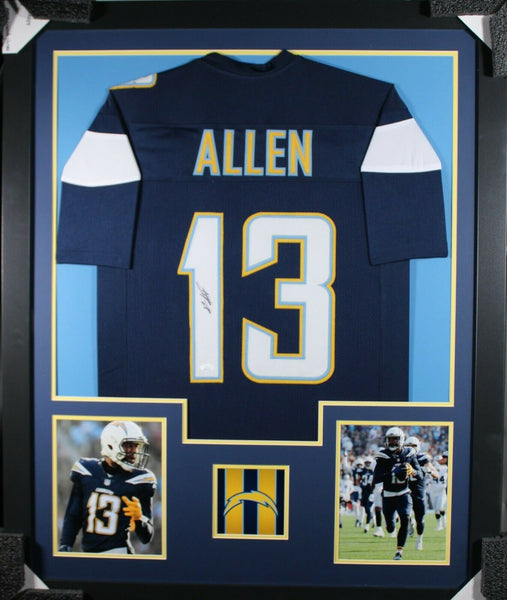 KEENAN ALLEN AUTOGRAPHED & PROFESSIONALLY FRAMED PRO-STYLE JERSEY(Occasionally our own stock pictures are used at times due to quantity of framing, all frames will look identical as the one pictured)THE FRAMED JERSEY MEASURES 35"x 44" & COMES WITH THE FOLLOWING:-UV Protected Acrylic-Triple Acid Free Team Colored Matting-2 High Quality 8"x10" Photos-Team LogoEvery framed autographed jersey is accompanied with a tamper-proof hologram on the signed part of the jersey from one of the main authenticators in the industry (JSA, Beckett, PSA, etc.) and can be verified on their corresponding websites to prove authenticity.