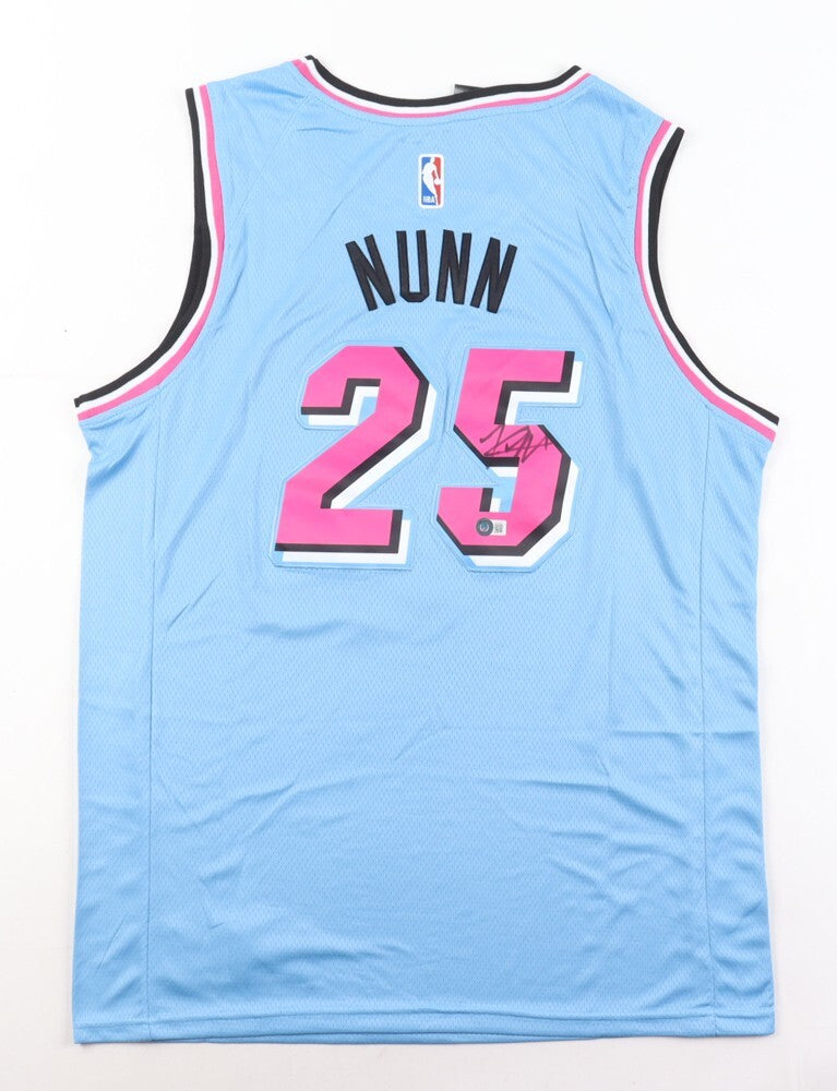 Custom on-court Nike style jersey with everything sewn on, size 50. Hand-signed by Kendrick Nunn (Miami Heat, Los Angeles Lakers, Washington Wizards).The autograph includes an official Beckett Authentication Services serially numbered hologram and QR Code card for authenticity purposes.Authentication: Beckett Hologram with QR Code card