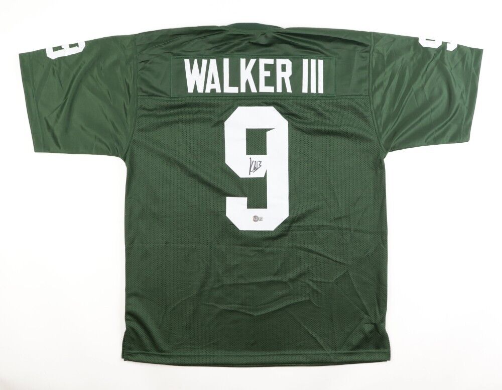 Custom on-field style jersey. Everything is sewn on, size XL. Hand-signed by Kenneth Walker III.The lot / autograph(s) includes an official Beckett Authentication Services serially-numbered hologram for authenticity purposes. The signing of this item was witnessed by Beckett.Authentication: Beckett HologramCustom on-field style jerseys are a more affordable option for autograph seekers. These jerseys do not have any brand name or tags and are made in the Philippines. They feature stitched on names and numbers and are made to look very similar to the on-field jerseys that the players wear. These custom jerseys are very commonly used in the memorabilia industry.
