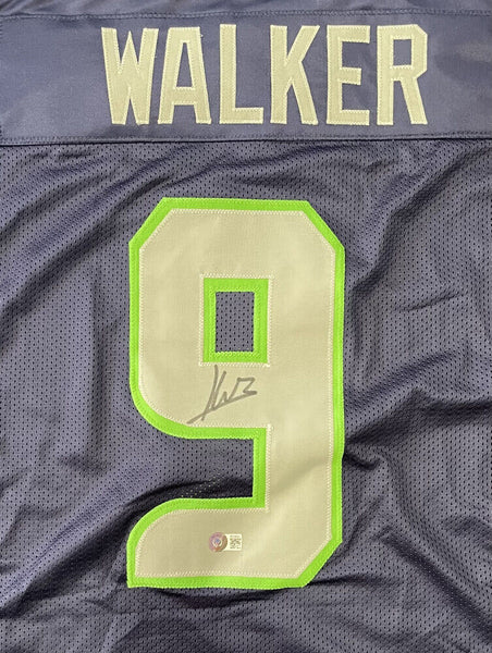 Custom on-field style jersey. Everything is sewn on, size XL. Hand-signed by Kenneth Walker.The lot / autograph(s) includes an official Beckett "Rookie Year" Authentication Services serially numbered hologram for authenticity purposes. Beckett defines their "Rookie Year" authentication as "A way to acknowledge autographs obtained before an athlete starts their second full season as a professional."Authentication: Beckett "Rookie Year" Hologram