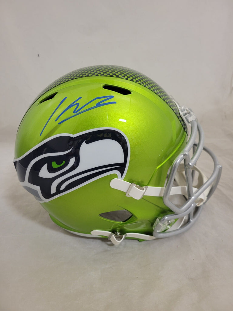 KENNETH WALKER III AUTOGRAPHED SIGNED SEATTLE SEAHAWKS FULL SIZE FLASH SPEED REPLICA HELMET BECKETT WITNESSED QR CODE COA