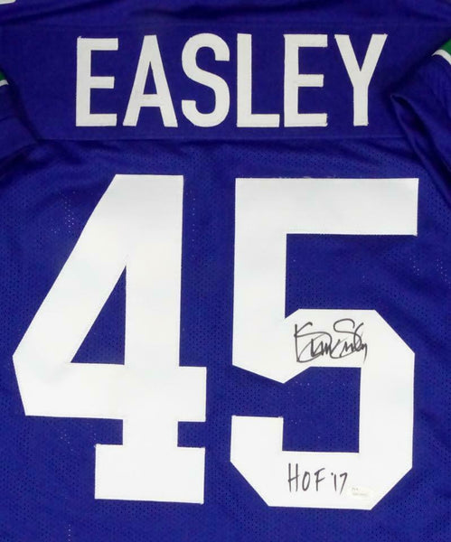 Kenny Easley Autographed Blue Pro Style Jersey W/ HOF - JSA W Auth *5 THIS IS NOT AN NFL JERSEY. THIS HAS NO TAGS, NO LOGOS, NO EMBLEMS. This is a hand autographed Jersey signed by Kenny Easley of the Seattle Seahawks. This is Custom Made (non name brand) Authentic Style (stitched letters and numbers). This item has a James Spence Witness Protection Authentication, which comes with a JSA numbered sticker and a matching Certificate of Authenticity. You can view this item on the SpenceLOA website, it shows when and where the item was signed. It was signed either at a public autograph appearance or a private signing. This is a stock photo of the item. Although you may not receive this exact item, the item you receive is virtually identical and brand new in great shape. Jersey size is XL.