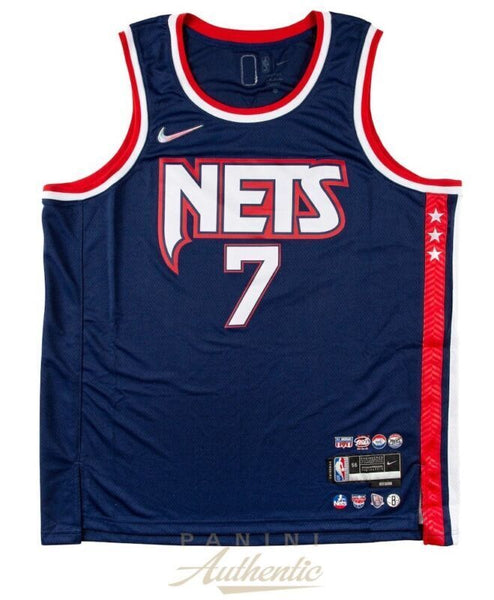 For the NBA's 75th season, the league collaborated with Nike to produce unique City Edition jerseys representing the history of each franchise with a modern twist. Per Nike, "the 2021-22 Nike NBA City Edition uniforms use both time and place as inspirations, highlighting some of the unforgettable moments across each franchise, from expansions to player performances to club titles". For the Brooklyn Nets, that meant bringing back the 90s style Nets logo with the red, white, and blue colorway that the Nets donned for decades. Celebrate the Nets' with this autographed City Edition jersey!This autographed jersey includes a Panini Authentic certificate of authenticity with a unique hologram number that corresponds to the hologram on the actual collectible. These holograms protect the integrity of the product and serve to guarantee the authenticity of the signature it bears. MONEY BACK GUARANTEE! If for any reason you are not completely satisfied with the quality or authenticity of your purchase, we will gladly give you a full refund or exchange, whichever you prefer up to 30 days after purchase. Please feel free to e-mail us with any questions. GOOD LUCK BIDDING!!! Authenticator Pre-Certified Authenticator: Panini Authenticated History of item: Durant has signed this item in the presence of a representative from Panini Authenticated. Describe how you came to possess this item: Super Sports Center is a fully authorized dealer for Upper Deck Authenticated as well as Panini Authenticated, Mounted Memories and Steiner Sports. Other information about you and / or the item: Super Sports Center strives to deliver the most authentic in sports memorabilia from trusted companies like Mounted Memories, Steiner Sports and Upper Deck Authenticated. If it exists, we can find it for you!