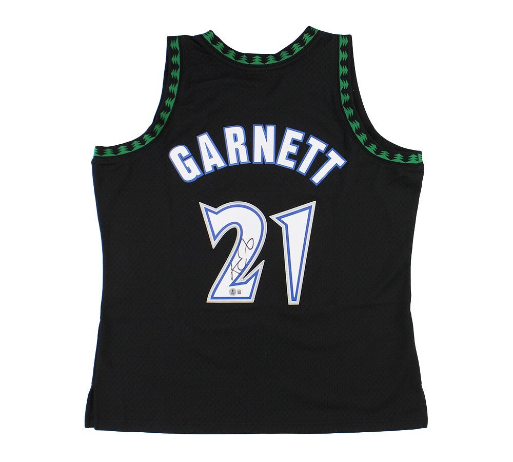 A Minnesota Timberwolves Mitchell & Ness Black Swingman Jersey hand signed by Kevin Garnett. The item and signature are in excellent condition. Kevin Garnett is a retired Professional Basketball Player. Kevin was NBA Most Valuable player in 2004, NBA Champion in 2008, 15x NBA All-Star, and 4x All-NBA First Team. AUTHENTICATION: The item is accompanied by a Beckett Serial Numbered & Databased Hologram