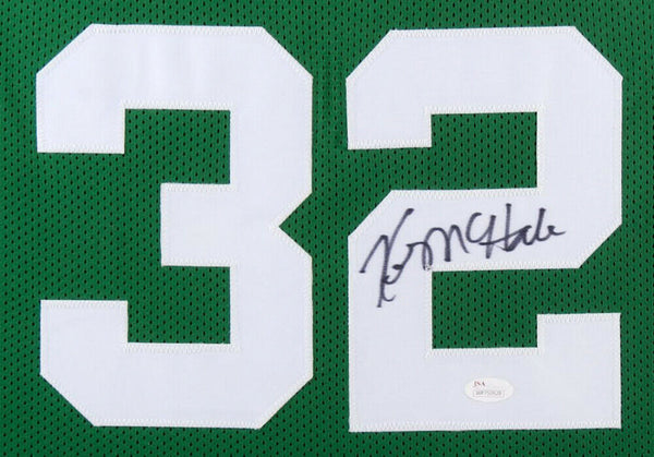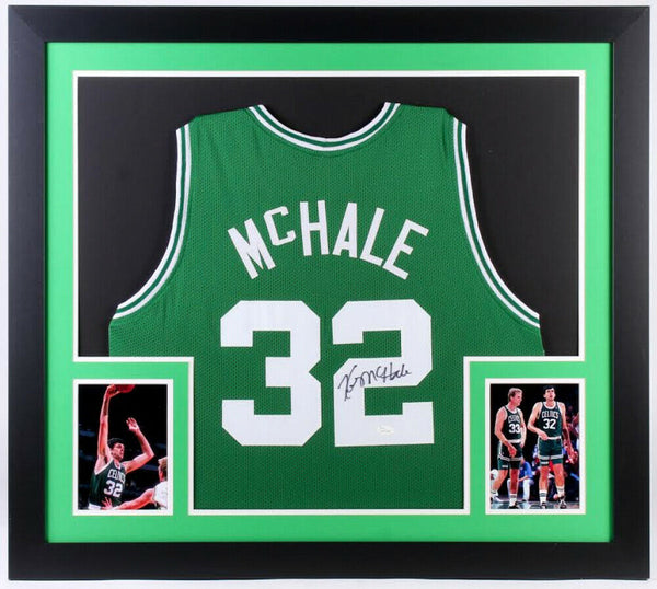 Custom frame measures 31" x 35" in size. Features a jersey that has been hand-signed in black felt-tip pen by Kevin McHale (HOF). The lot / autograph(s) includes an official James Spence Authentication (JSA) hologram and matching COA for authenticity purposes. The signing of this item was witnessed by JSA.Authentication: JSA COA