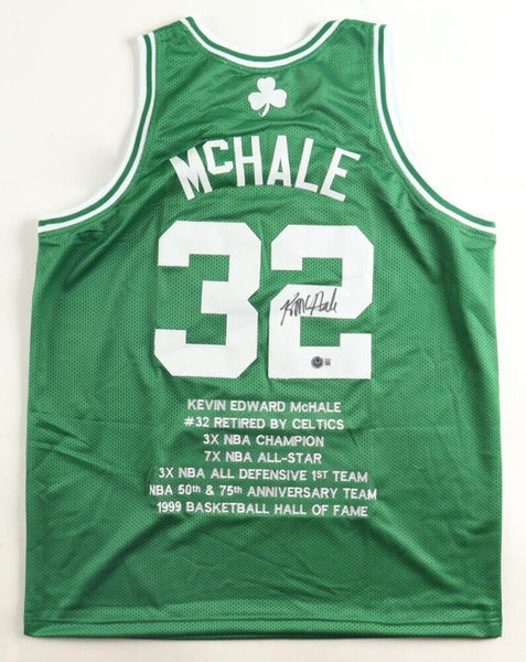 Custom on-court style jersey. Everything is sewn on, size XL. Hand-signed by Kevin McHale (HOF). McHale's career highlight statistics have been custom stitched below the reverse number.The autograph includes an official Beckett Authentication Services serially numbered hologram and QR Code Card for authenticity purposes. The signing of this item was witnessed by Beckett.Authentication: Beckett Hologram with QR Code Card