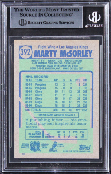 This Autographed 1990 Topps #392 Card has been Personally Signed by Marty McSorley of the Los Angeles Kings. This item is 100% Authentic, it comes slabbed and authenticated by Beckett Authentication Services. The authenticity can be verified on Beckett Authentication Services website.