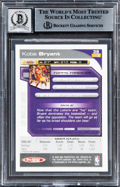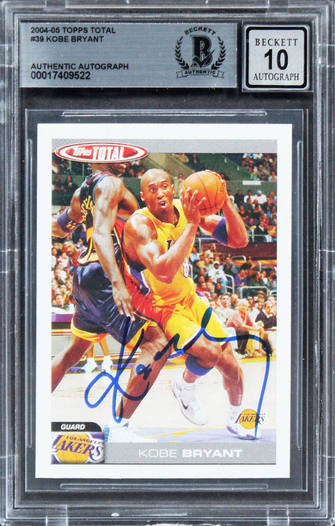 This Autographed Auto Graded Gem Mint 10! 2004 Topps Total #39 Card has been Personally Signed by Kobe Bryant. This item is 100% Authentic, it comes slabbed and authenticated by Beckett Authentication Services. The authenticity can be verified on Beckett Authentication Services website.