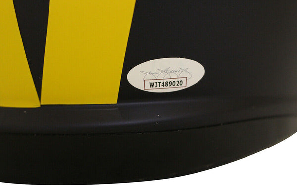 Kwity Paye Autographed Michigan Wolverines F/S Speed Helmet Beckett 34936 The number in the listing title is just an inventory sku for our records and is not the authentication number. The item pictured is a stock photo unless otherwise noted. This is a Michigan Wolverines full size speed replica helmet that was personally autographed by Kwity Paye. Includes a certificate of authenticity from Beckett Authentication Services (BAS) and Denver Autographs.
