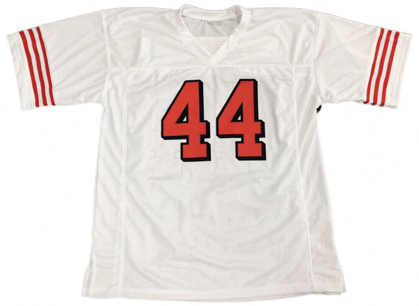 Custom on-field style jersey. Everything is sewn on, size XL. Has been hand-signed in black felt-tip pen by Kyle Juszczyk. The lot / autograph(s) includes an official Beckett Authentication Services serially-numbered hologram and QR Code Card for authenticity purposes. The signing of this item was witnessed by Beckett.Authentication: Beckett Hologram with QR Code Card