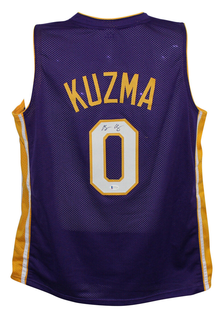 Kyle Kuzma Autographed/Signed Pro Style Purple XL Jersey BAS 31096 The number in the listing title is just an inventory sku for our records and is not the authentication number. This is a custom pro style purple XL jersey with sewn on name and numbers that was personally autographed by Kyle Kuzma. Includes a certificate of authenticity from Beckett Authentication Services (BAS) and Denver Autographs.