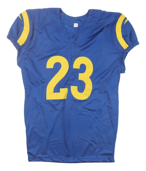 Featured is a Kyren Williams signed custom football jersey. This jersey has been hand signed by Williams and comes with the Beckett hologram and certificate of authenticity. This jersey features professionally sewn letters and numbers and is size XL. This jersey has no team tags or emblems and is intended as a sports collectible. This jersey would make a great addition to any sports memorabilia collection!. SPECIFICATIONS Autographed By: Kyren Williams Team: Los Angeles Rams Sport: Football Authentication: Beckett Grading Services