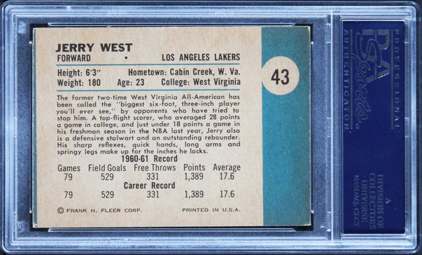 This is a 1961 Fleer #43 Rookie Graded VG-EX-4 Card of Jerry West of the Los Angeles Lakers. This item is 100% Authentic, it comes slabbed and authenticated by PSA. This item is not autographed. The authenticity can be verified on Professional Sports Authenticator website. This card is not autographed.