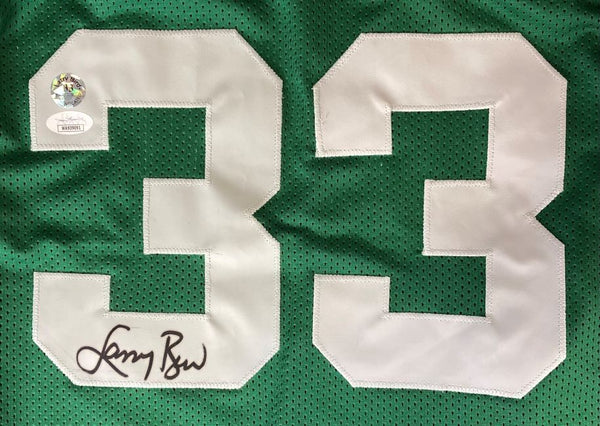 Featured is a Larry Bird signed custom basketball jersey. This jersey has been hand signed by Bird and comes with the JSA witnessed hologram and certificate of authenticity, along with the Bird exclusive hologram. This jersey features professionally sewn letters and numbers and is size XL. This jersey has no tags or emblems and is intended as a sports collectible. This jersey would make a great addition to any sports memorabilia collection!. SPECIFICATIONS Autographed By: Larry Bird Team: Boston Celtics Sport: Basketball Authentication: James Spence Authentication (JSA)