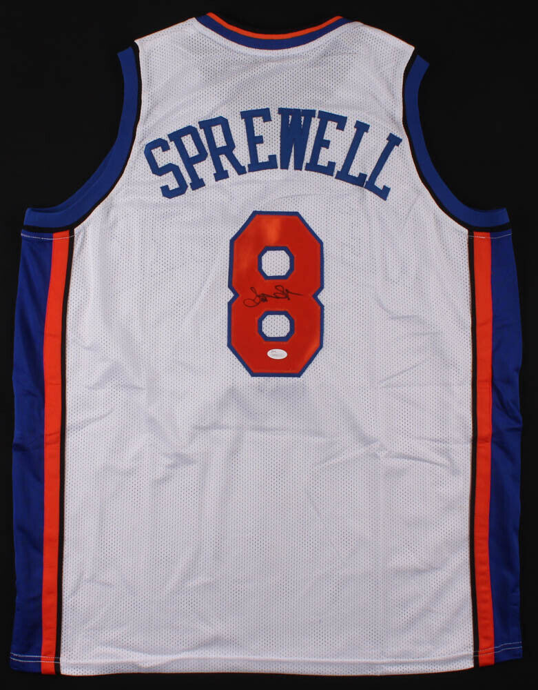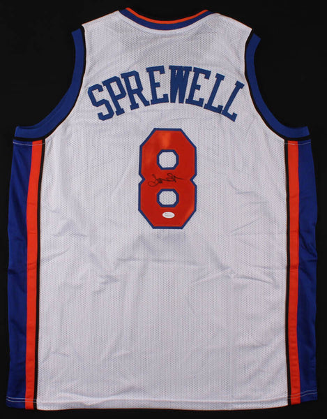 Custom on-field style jersey. Everything is sewn on, size XL. Has been hand-signed in black felt-tip pen by Latrell Sprewell. The lot / autograph(s) includes an official James Spence Authentication (JSA) hologram and matching COA for authenticity purposes. The signing of this item was witnessed by JSA.Authentication: JSA COA