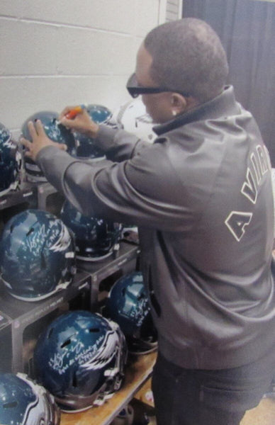 LeSean McCoy Signed/Inscribed Philadelphia Eagles Green Speed Full Size Replica Football Helmet. This helmet is authenticated by PSA/DNA In the Presence and includes their Tamper-proof Hologram Sticker.