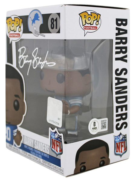 This Autographed #81 Funko Pop Vinyl Figure has been Personally Signed by Barry Sanders of the Detroit Lions. This item is 100% Authentic to include a hologram by Beckett Authentication Services. This item will come with an affixed Beckett Authentication Services (BAS) authentication sticker, which includes a scannable QR code to verify authenticity. Please note that Beckett no longer provides serial-numbered COA cards, and the attached BAS sticker will serve as the complete authentication for this item. This is a BAS Witnessed Protection Program item which means a Beckett Authentication Service representative was present when this item was being signed. We conducted an autograph signing with Barry Sanders where multiples of the same item were signed. While the photographs are representative of this item, the size, placement and strength of the signature may vary. Each item is hand signed, therefore, each autograph is unique. This item can be verified through BAS Witnessed. This item will ship in a Pop! Protector, please refer to the photos for condition of the item prior to purchase, these are in good condition but would not be considered mint.