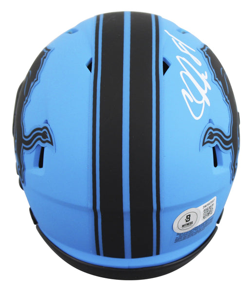 This Autographed Alternate Rave Speed Mini Helmet has been Personally Signed by Calvin Johnson of the Detroit Lions. This item is 100% Authentic to include a hologram by Beckett Authentication Services. This item will come with an affixed Beckett Authentication Services (BAS) authentication sticker, which includes a scannable QR code to verify authenticity. Please note that Beckett no longer provides serial-numbered COA cards, and the attached BAS sticker will serve as the complete authentication for this item. This is a BAS Witnessed Protection Program item which means a Beckett Authentication Service representative was present when this item was being signed. We conducted an autograph signing with Calvin Johnson where multiples of the same item were signed. While the photographs are representative of this item, the size, placement and strength of the signature may vary. Each item is hand signed, therefore, each autograph is unique. This item can be verified through BAS Witnessed.