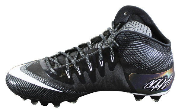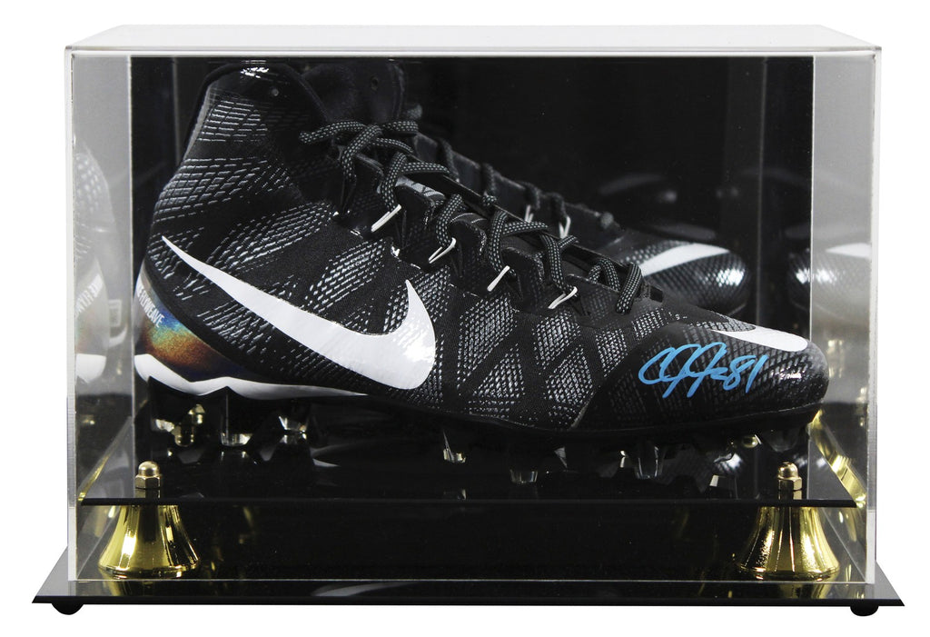 This Autographed Calvin Johnson Signature Series Right Football Cleat W/ UV Mirrored Back Acrylic Display Case has been Personally Signed by Calvin Johnson of the Detroit Lions. This item is 100% Authentic to include a hologram by Beckett Authentication Services. This item will come with an affixed Beckett Authentication Services (BAS) authentication sticker, which includes a scannable QR code to verify authenticity. Please note that Beckett no longer provides serial-numbered COA cards, and the attached BAS sticker will serve as the complete authentication for this item. This is a BAS Witnessed Protection Program item which means a Beckett Authentication Service representative was present when this item was being signed. We conducted an autograph signing with Calvin Johnson where multiples of the same item were signed. While the photographs are representative of this item, the size, placement and strength of the signature may vary. Each item is hand signed, therefore, each autograph is unique. This item can be verified through BAS Witnessed. There are multiple sizes available, you are not guaranteed a certain size.