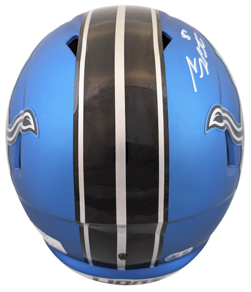 This Autographed 2024 On Field Alternate Full Size Speed Rep Helmet W/ Uv Mirrored Back Acrylic Display Case has been Personally Signed by Sam LaPorta of the Detroit Lions. This item is 100% Authentic to include a hologram by Beckett Authentication Services. This item will come with an affixed Beckett Authentication Services (BAS) authentication sticker, which includes a scannable QR code to verify authenticity. Please note that Beckett no longer provides serial-numbered COA cards, and the attached BAS sticker will serve as the complete authentication for this item. This is a BAS Witnessed Protection Program item which means a Beckett Authentication Service representative was present when this item was being signed. We conducted an autograph signing with Sam LaPorta where multiples of the same item were signed. While the photographs are representative of this item, the size, placement and strength of the signature may vary. Each item is hand signed, therefore, each autograph is unique. This item can be verified through BAS Witnessed.