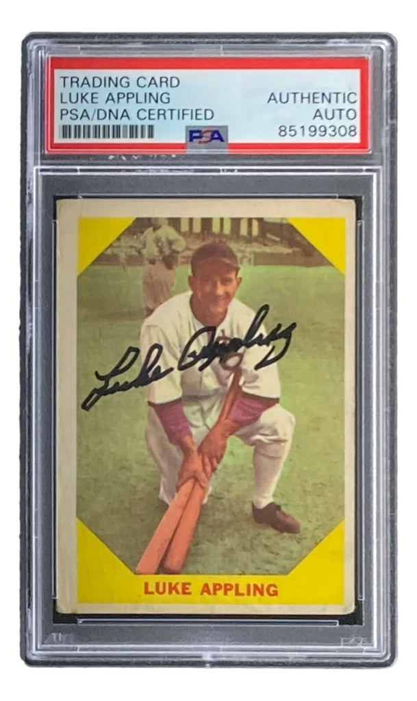 Featured is a Luke Appling signed 1960 Fleer #27 trading card. This card has been hand signed by Appling and has been authenticated and encapsulated by PSA/DNA. This card would make a great addition to any sports memorabilia collection!. SPECIFICATIONS Autographed By: Luke Appling Team: Sport: Baseball Authentication: Professional Sports Authenticator (PSA)