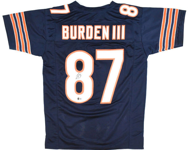 THIS IS NOT AN NFL JERSEY. THIS HAS NO TAGS, NO LOGOS, NO EMBLEMS. This is a hand autograph of Luther Burden of the Chicago Bears on a Custom Made (non-name brand) Authentic Style Jersey with stitched letters and numbers. This item has a Beckett Witnessed Authentication, which comes with a Beckett numbered sticker hologram and a QR Code for verification. You can view this item on the Beckett Authentication website. It was signed either at a public autograph appearance or a private signing. This is a stock photo of the item. Although you may not receive this exact item, the item you receive is virtually identical and brand new in great shape. Jersey size is XL. THIS IS NOT AN NFL JERSEY. THIS HAS NO TAGS, NO LOGOS, NO EMBLEMS. This is a hand autograph of Luther Burden of the Chicago Bears on a Custom Made (non-name brand) Authentic Style Jersey with stitched letters and numbers. This item has a Beckett Witnessed Authentication, which comes with a Beckett numbered sticker hologram and a QR Code for verification. You can view this item on the Beckett Authentication website. It was signed either at a public autograph appearance or a private signing. This is a stock photo of the item. Although you may not receive this exact item, the item you receive is virtually identical and brand new in great shape. Jersey size is XL.