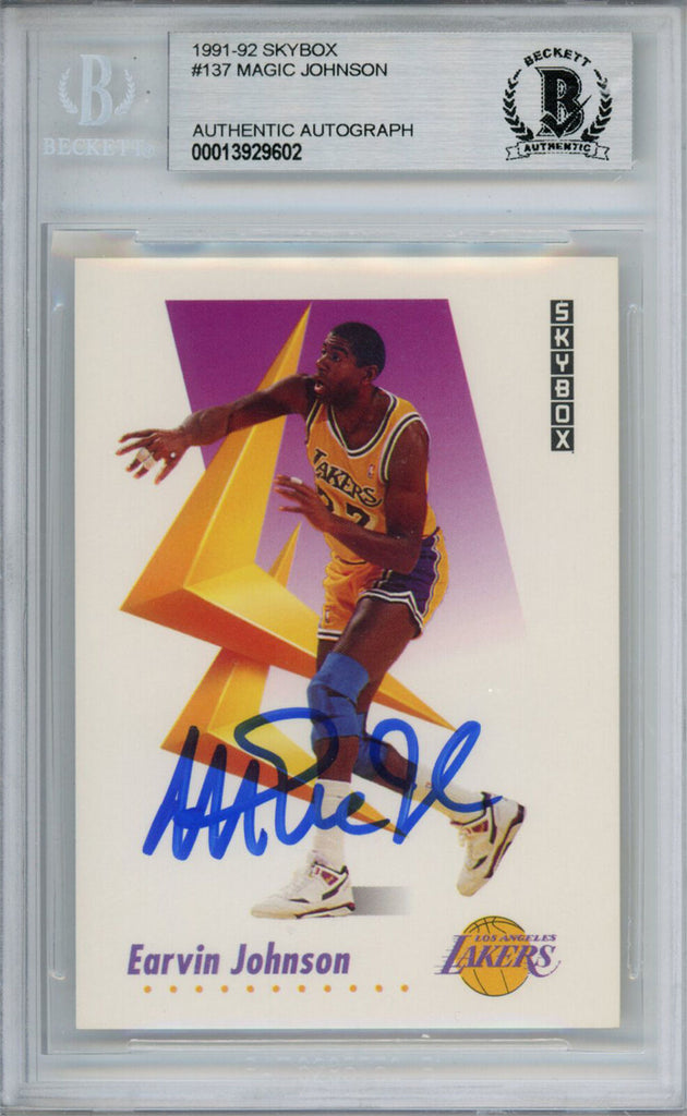 Magic Johnson Signed 1991-92 Skybox #137 Trading Card Beckett Slab 37660 The number in the listing title is just an inventory sku for our records and is not the authentication number. The item pictured is a stock photo unless otherwise noted. This is a trading card that was personally autographed by Magic Johnson. This has been professionally slabbed by Beckett Authentication Services (BAS) and includes a certificate of authenticity from Denver Autographs.