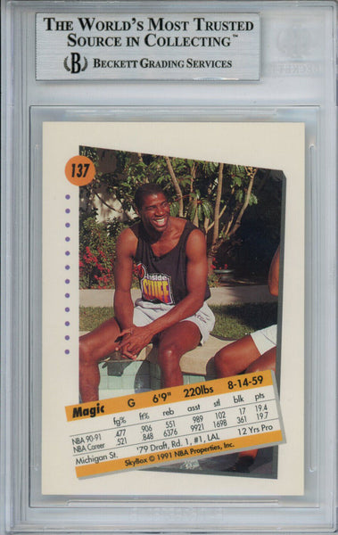 Magic Johnson Signed 1991-92 Skybox #137 Trading Card Beckett Slab 37660