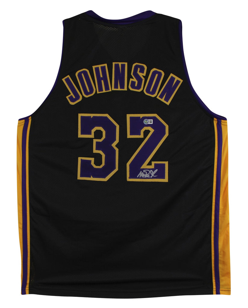 This Autographed w/ Purple Numbers Black Pro Style Jersey has been Personally Signed by Magic Johnson of the Los Angeles Lakers. This item is 100% Authentic to include a hologram by Beckett Authentication Services. This item will come with an affixed Beckett Authentication Services (BAS) authentication sticker, which includes a scannable QR code to verify authenticity. Please note that Beckett no longer provides serial-numbered COA cards, and the attached BAS sticker will serve as the complete authentication for this item. This is a BAS Witnessed Protection Program item which means a Beckett Authentication Service representative was present when this item was being signed. We conducted an autograph signing with Magic Johnson where multiples of the same item were signed. While the photographs are representative of this item, the size, placement and strength of the signature may vary. Each item is hand signed, therefore, each autograph is unique. This item can be verified through BAS Witnessed. This is a X-Large sized, non-branded, custom-stitched Jersey.