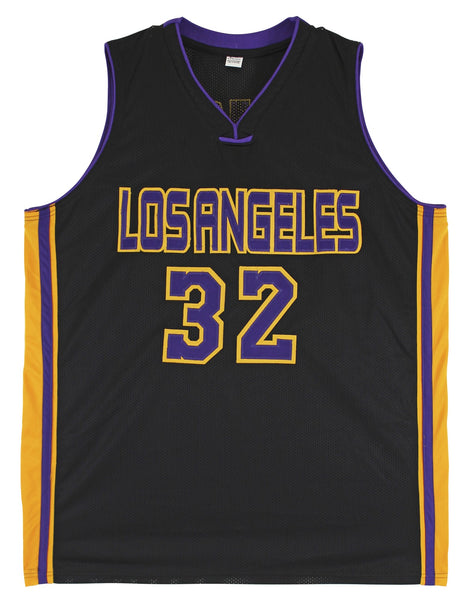 Magic Johnson Signed Black Pro Style Jersey w/ Purple Numbers BAS Witnessed 2