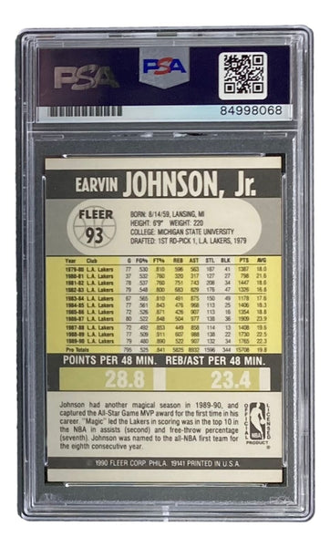 Magic Johnson Signed LA Lakers 1990 Fleer #93 Trading Card PSA/DNA Gem MT 10