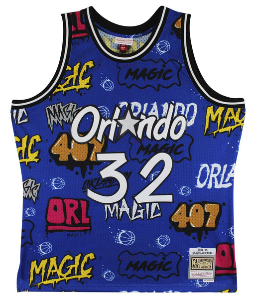This Autographed Alternate Blue Mitchell & Ness 1994-95 Hardwood Classics Swingman Jersey has been Personally Signed by Shaquille O'Neal of the Orlando Magic. This item is 100% Authentic to include a hologram by Beckett Authentication Services. This item will come with an affixed Beckett Authentication Services (BAS) authentication sticker, which includes a scannable QR code to verify authenticity. Please note that Beckett no longer provides serial-numbered COA cards, and the attached BAS sticker will serve as the complete authentication for this item. This is a BAS Witnessed Protection Program item which means a Beckett Authentication Service representative was present when this item was being signed. We conducted an autograph signing with Shaquille O'Neal where multiples of the same item were signed. While the photographs are representative of this item, the size, placement and strength of the signature may vary. Each item is hand signed, therefore, each autograph is unique. This item can be verified through BAS Witnessed. This is a X-Large sized Jersey.