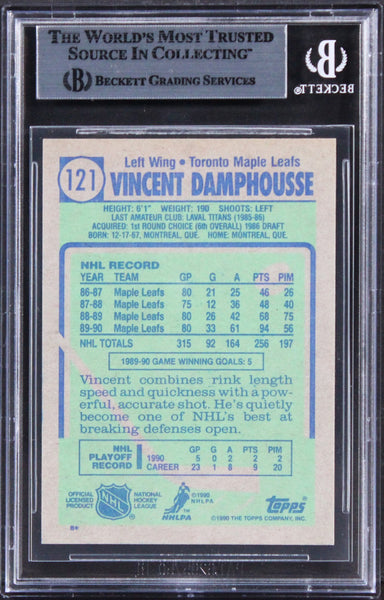 This Autographed 1990 Topps #121 Card has been Personally Signed by Vincent Damphousse of the Toronto Maple Leafs. This item is 100% Authentic, it comes slabbed and authenticated by Beckett Authentication Services. The authenticity can be verified on Beckett Authentication Services website.