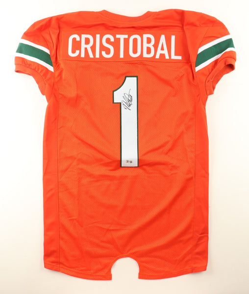 Custom on-field style jersey. Everything sewn on, size XL. Hand-signed by Mario Cristobal.The lot / autograph(s) includes an official Beckett Authentication Services serially-numbered scannable hologram and QR Code card for authenticity purposes. The signing of this item was witnessed by Beckett.Authentication: Beckett Scannable Hologram with QR Code card