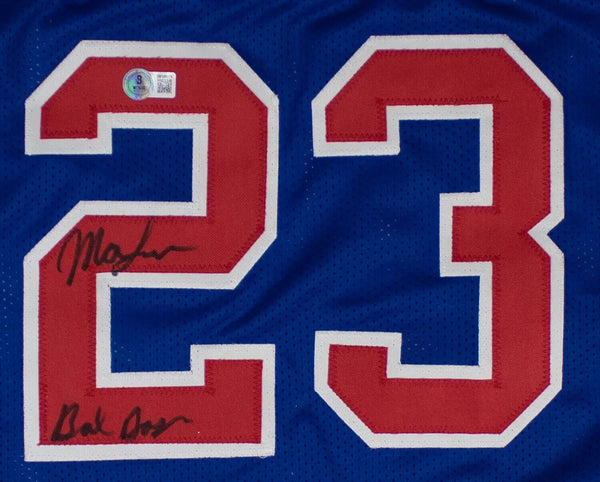Custom on-court style jersey. Everything is sewn on, size XL. Hand-signed by Mark Aguirre of the Detroit Pistons. When signing, Aguirre inscribed "Bad Boys" along with his signature.This autograph is certified by Beckett Authentication Services (BAS) Witness Certification. That means that a Beckett representative was present when this item was signed. It comes with the numbered authentication scannable hologram with a QR code card that verifies the authentication on the Beckett website.Custom on-court style jerseys are a more affordable option for autograph seekers. These jerseys do not have any brand name or tags and are made in the Philippines. They feature stitched on names and numbers and are made to look very similar to the on-field jerseys that the players wear. These custom jerseys are very commonly used in the memorabilia industry.