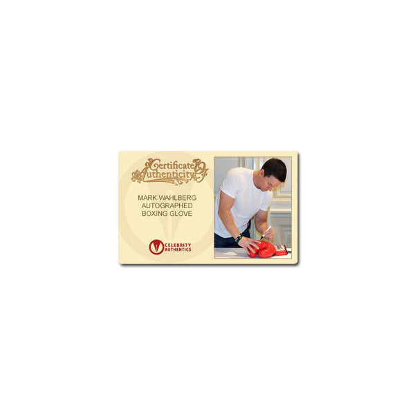 This Everlast Boxing Glove has been personally hand-signed by film star Mark Wahlberg during his signing with Celebrity Authentics. Mark portrayed 'Irish' Micky Ward in the Award Winning film, The Fighter. Ships affixed with Celebrity Authentics serial-numbered and tamper evident Authentication Hologram and includes Celebrity Authentics Certificate of Authenticity featuring picture of Mark signing the glove. Please note: with multiples signed by the actor, a sample photo is used from stock to represent what you will receive. Exact autograph size and placement may vary.