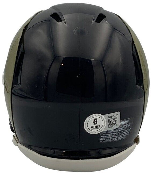 Marshall Faulk has autographed this St Louis mini helmet. Autograph was witnessed and authenticated by Beckett Authentication Services (BAS) who was present for the signing with him and witnessed him signing your item. Simply scan the QR code on the hologram with your phone to verify.Stock image.