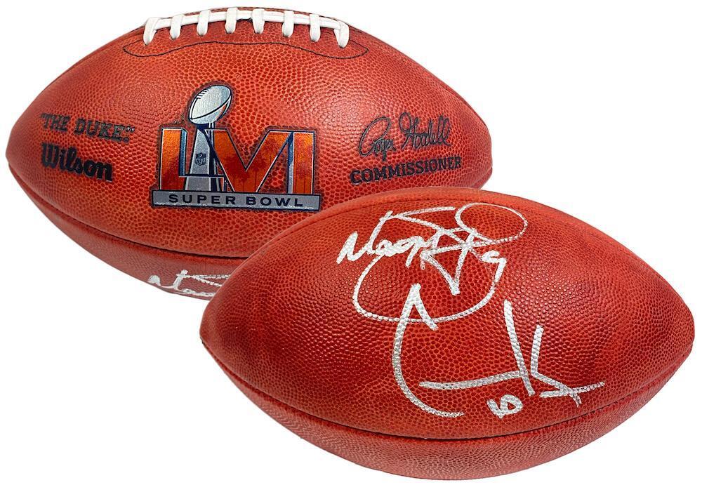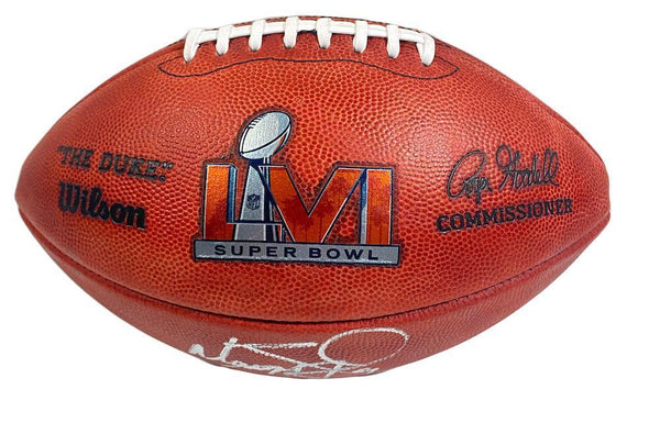 This authentic Super Bowl LVI Duke official football has been personally hand-signed by Matthew Stafford and Cooper Kupp. It is officially licensed by the National Football League and comes with an individually numbered, tamper-evident hologram from Fanatics Authentic. To ensure authenticity, the hologram can be reviewed online. This process helps to ensure that the product purchased is authentic and eliminates any possibility of duplication or fraud.The autograph includes an official Fanatics hologram and matching COA for authenticity purposes.Comes with a tamper-evident hologram from Fanatics AuthenticatedOfficially licensed by the NFL MONEY BACK GUARANTEE! If for any reason you are not completely satisfied with the quality or authenticity of your purchase, we will gladly give you a full refund or exchange, whichever you prefer up to 30 days after purchase. Please feel free to e-mail us with any questions. Thank you. Authenticator Pre-Certified Authenticator: Fanatics Authenticated History of item: Matthew Stafford and Cooper Kupp have signed this item in the presence of a representative from Fanatics. Describe how you came to possess this item: Super Sports Center is a fully authorized dealer for Upper Deck Authenticated as well as Mounted Memories and Steiner Sports. Other information about you and / or the item: Super Sports Center strives to deliver the most authentic in sports memorabilia from trusted companies like Mounted Memories, Steiner Sports and Upper Deck Authenticated. If it exists, we can find it for you!