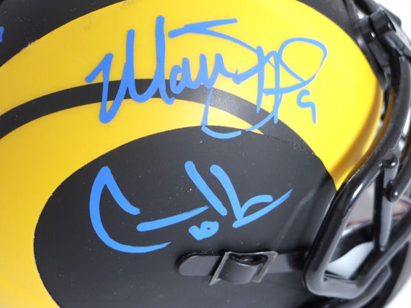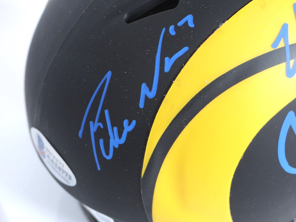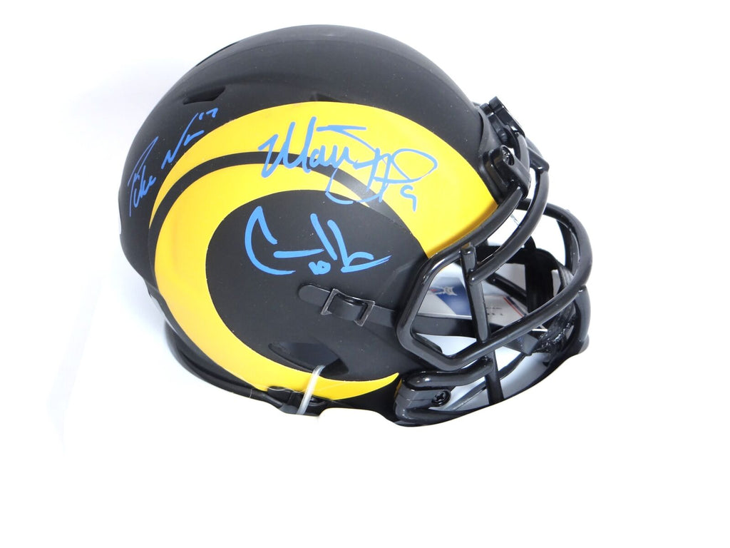 This is a Matthew Stafford, Cooper Kupp and Puka Nacua of the Los Angeles Rams hand autographed Riddell Eclipse speed mini helmet. This item has a Beckett Witnessed and Fanatics Authentication, which comes with a numbered sticker hologram and a QR code for verification. You can view this item on the Beckett and Fanatics Authentication website, it shows when and where the item was signed. It was signed either at a public autograph appearance or a private signing. This is photo is the exact item that you will receive. This is a Matthew Stafford, Cooper Kupp and Puka Nacua of the Los Angeles Rams. Hand autographed Riddell Eclipse speed mini helmet. This item has a Beckett Witnessed and Fanatics Authentication, which comes with a numbered sticker hologram and a QR code for verification. You can view this item on the Beckett and Fanatics Authentication website, it shows when and where the item was signed. It was signed either at a public autograph appearance or a private signing. This is photo is the exact item that you will receive.