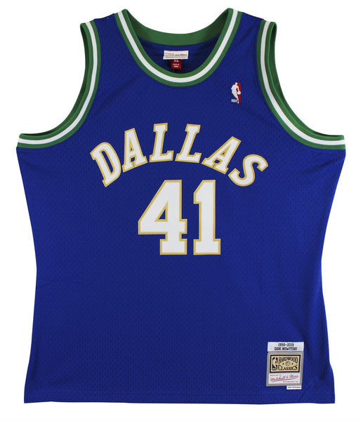 This Autographed Blue Mitchell & Ness 1998-2019 Hardwood Classics Swingman Jersey has been Personally Signed by Dirk Nowitzki of the Dallas Mavericks. This item is 100% Authentic to include a hologram by Beckett Authentication Services. This item will come with an affixed Beckett Authentication Services (BAS) authentication sticker, which includes a scannable QR code to verify authenticity. Please note that Beckett no longer provides serial-numbered COA cards, and the attached BAS sticker will serve as the complete authentication for this item. The authenticity can be verified on Beckett Authentication Services website. This is a X-Large sized Jersey.