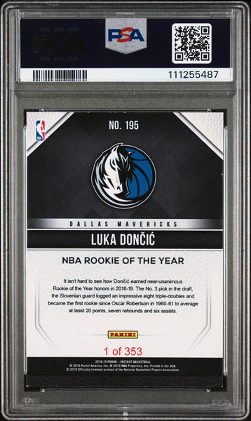 Mavericks Luka Doncic Signed 2018 Panini Instant #195 Rookie Card PSA Slabbed 1