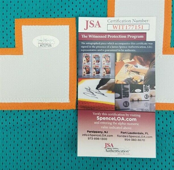 Custom on-field style jersey. Everything is sewn on, size XL. Jersey is hand-signed and inscribed in black felt tip pen by Mercury Morris. The lot / autograph(s) includes an official James Spence Hologram and matching COA for authenticity purposes.Authentication: JSA Witnessed COA