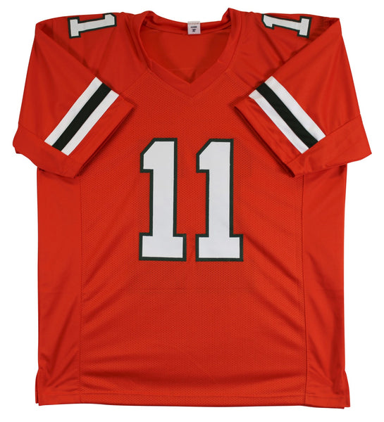 This Autographed Orange Pro Style Jersey has been Personally Signed by Carson Beck of the Miami Hurricanes. This item is 100% Authentic to include a hologram by Beckett Authentication Services. This item will come with an affixed Beckett Authentication Services (BAS) authentication sticker, which includes a scannable QR code to verify authenticity. Please note that Beckett no longer provides serial-numbered COA cards, and the attached BAS sticker will serve as the complete authentication for this item. This is a BAS Witnessed Protection Program item which means a Beckett Authentication Service representative was present when this item was being signed. We conducted an autograph signing with Carson Beck where multiples of the same item were signed. While the photographs are representative of this item, the size, placement and strength of the signature may vary. Each item is hand signed, therefore, each autograph is unique. This item can be verified through BAS Witnessed. This is a X-Large sized, non-branded, custom-stitched Jersey.